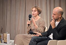 Презентация книги писателя Александра Снегирева "По линии матери" в Центре культуры НИУ ВШЭ. Слева…
