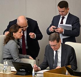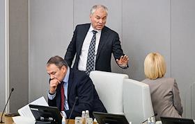 Пленарное заседание Государственной думы (ГД) России. Слева направо: председатель комитета ГД России…