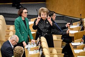 Пленарное заседание Государственной думы (ГД) России. Слева направо: заместители председателя ГД…