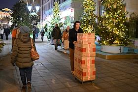 Виды Москвы. Столешников переулок. Новогоднее украшение города. Жанровая фотография. Плюшевый…