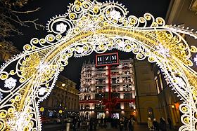 Виды Москвы. Столешников переулок. Новогоднее украшение города. Жанровая фотография.