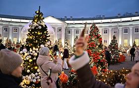 Виды Москвы. Новогоднее украшение города. Жанровая фотография. Девушки на фестивальной площадке…