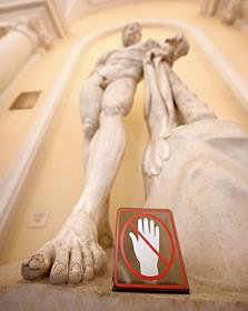 Виды Государственного Эрмитажа. Жанровая фотография. Табличка "Руками не трогать" на постаменте…