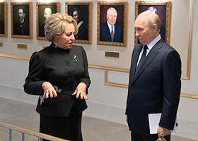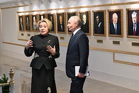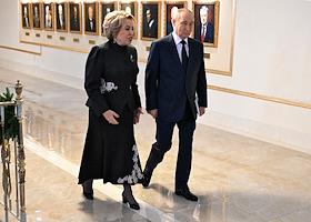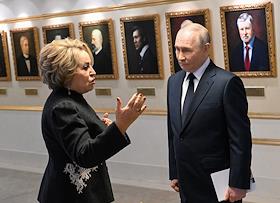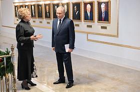 Пленарное заседание Совета Федерации России. Президент России Владимир Путин (слева) и председатель…