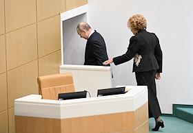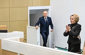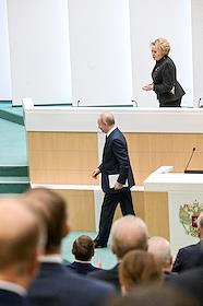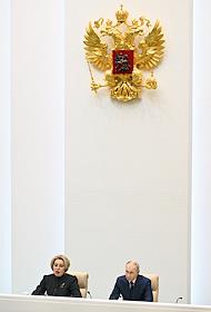 Пленарное заседание Совета Федерации России. Президент России Владимир Путин (справа) и председатель…