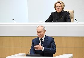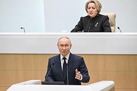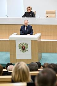 Президент России Владимир Путин на пленарном заседании Совета Федерации России.
