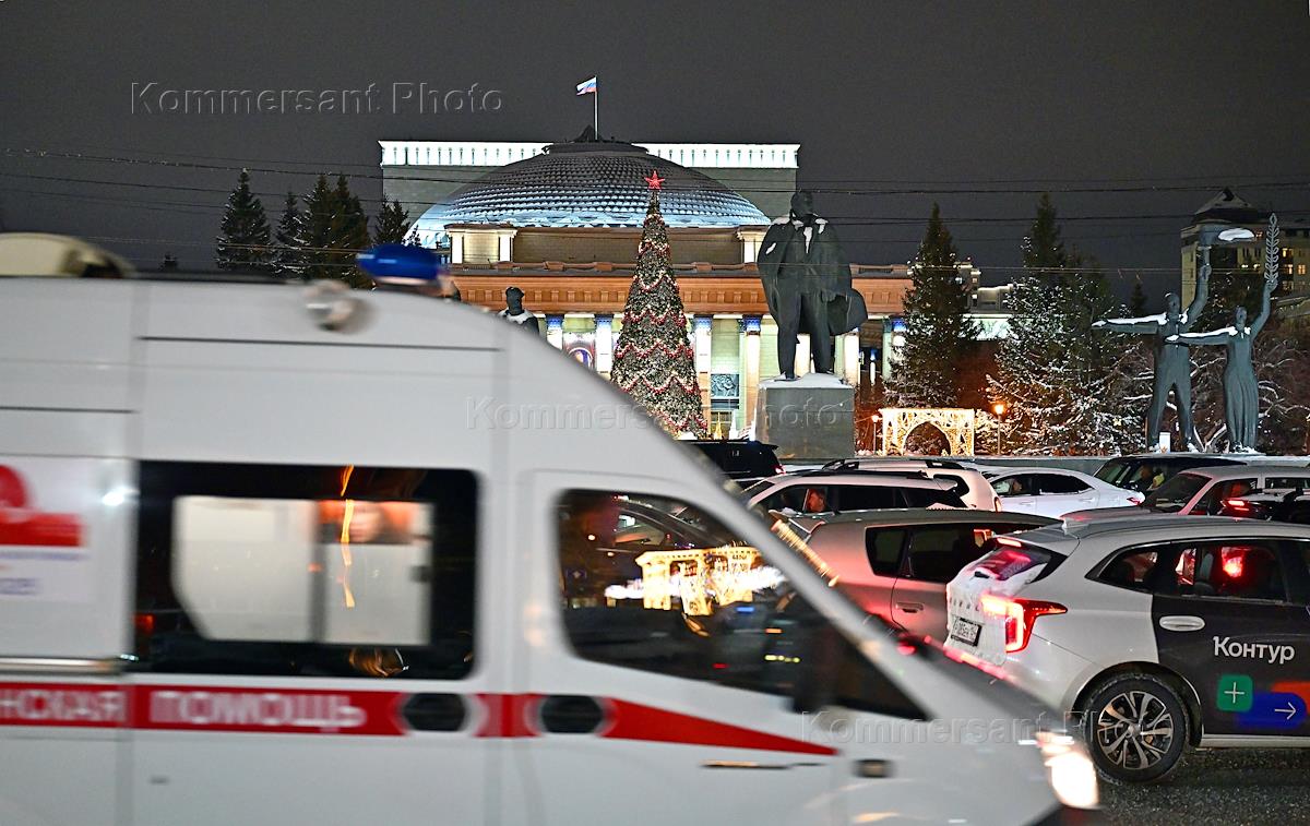 Виды Новосибирска. Жанровая фотография. Новогодняя иллюминация города. Аниматор в костюме синей…