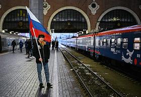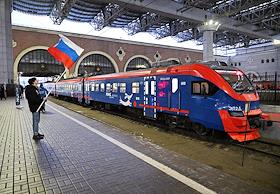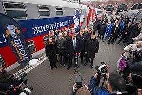 Первый тематический поезд с вагоном «Россия. Жириновский» отправился с Казанского вокзала в Москве.