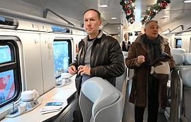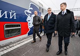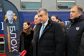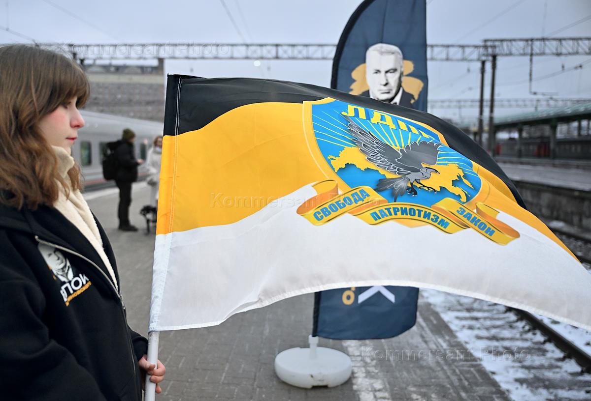 Церемония отправки первого тематического поезда с брендированным вагоном "Россия. Жириновский" по…