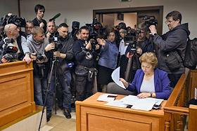 Судебное заседание по делу о приобретении квартиры Полиной Лурье у певицы Ларисы Долиной в Московском городском суде.