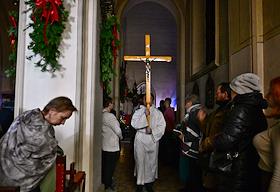 Жанровые фотографии. Рождественское богослужение в католическом кафедральном соборе Преображения Господня в Красноярске.