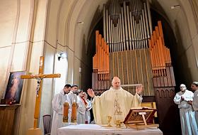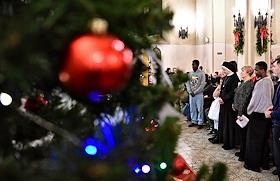 Рождественское богослужение в католическом кафедральном соборе Преображения Господня.