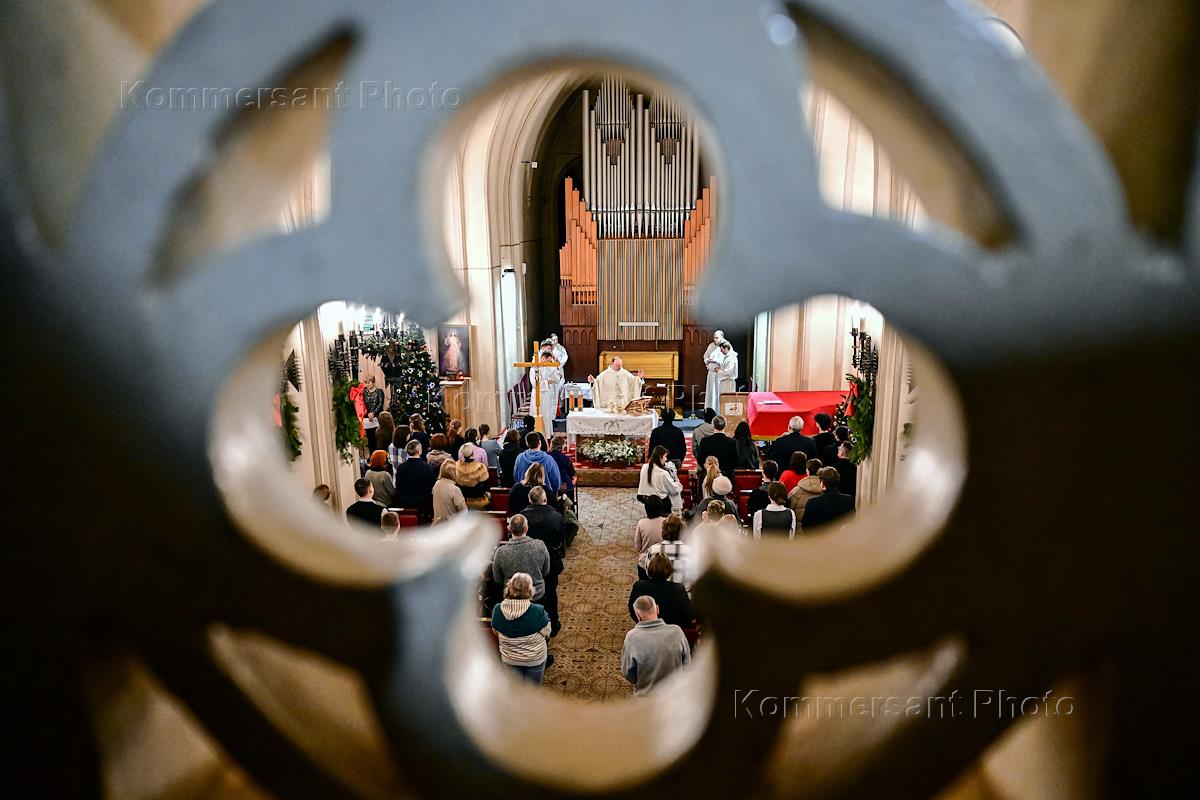 Рождественское богослужение в католическом кафедральном соборе Преображения Господня. Жанровая…
