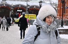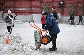 Жанровая фотография. Город елочных игрушек на Площади революции. Сотрудники коммунальных служб…