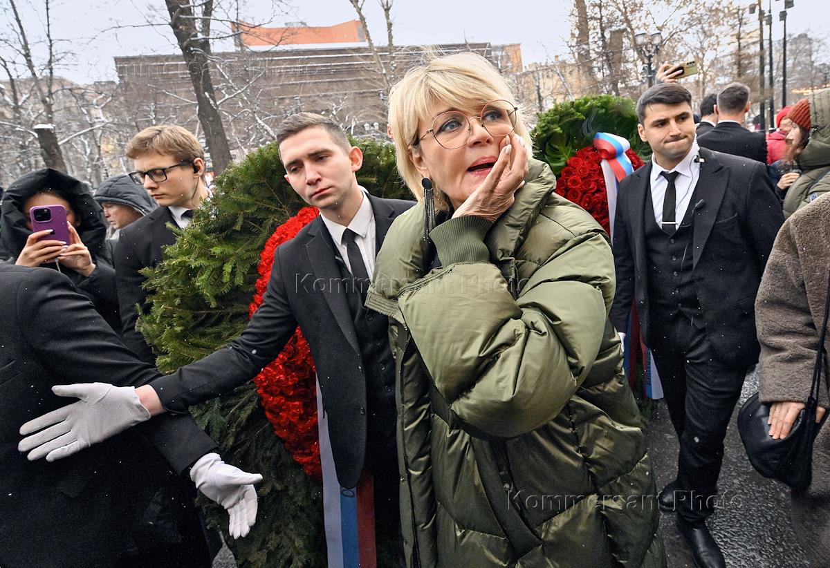 Церемония прощания с народной артисткой России Верой Алентовой в Театре имени А.С.Пушкина. Дочь…