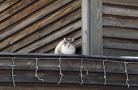 Фестиваль "Зима 100. Жар во льду" в парке "Волжский". Жанровая фотография. Кот на крыше деревянного…