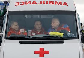 Фестиваль "Зима 100. Жар во льду" в парке "Волжский". Жанровая фотография. Бригада медиков скорой…