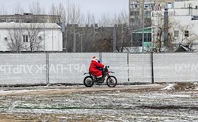 Фестиваль "Зима 100. Жар во льду" в парке "Волжский". Жанровая фотография. Дед Мороз едет по трассе…