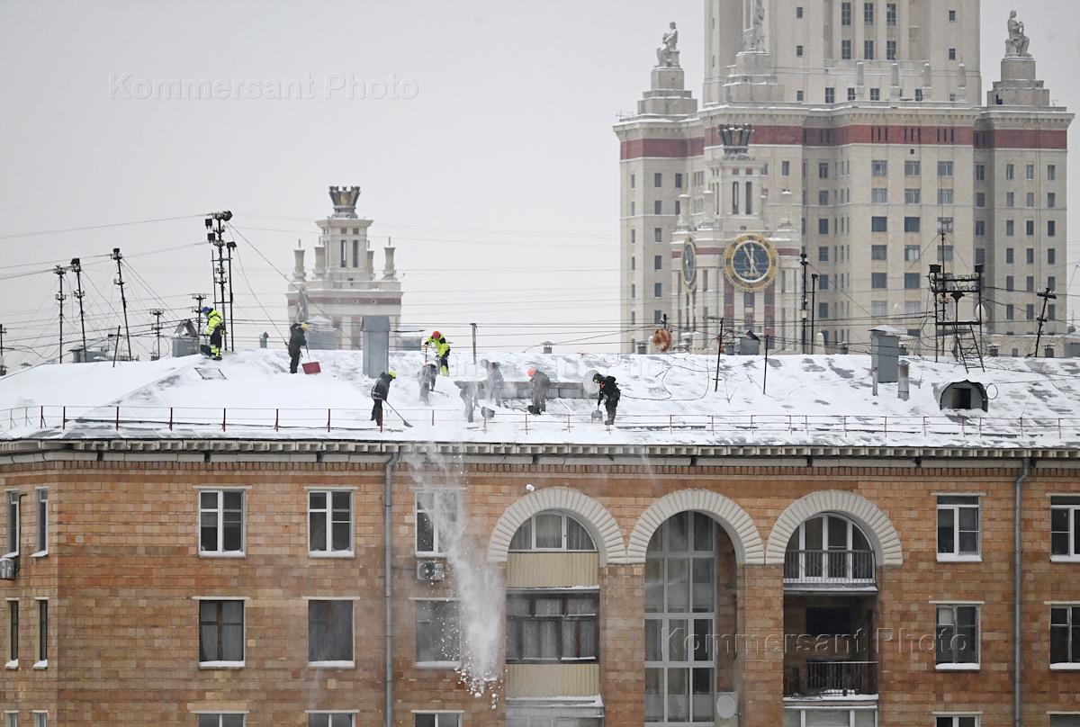 Виды Москвы во время снегопада. Жанровая фотография. Сотрудники городской коммунальной службы во…
