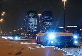 Виды вечерней Москвы во время снегопада. Жанровая фотография. Дорожное движение на улицах города.