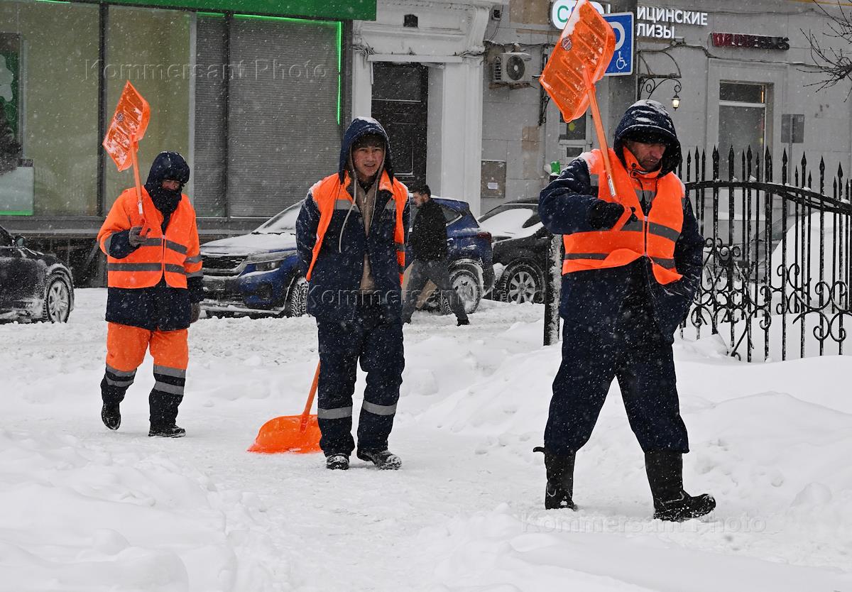 Виды Москвы во время снегопада. Жанровая фотография. Уборка снега.