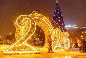 Виды новогодней Москвы. Жанровая фотография. Световая конструкция на Смоленской площади.