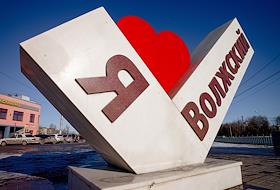 Виды города Волжский. Жанровая фотография. Знак "Я люблю Волжский" на улице города.