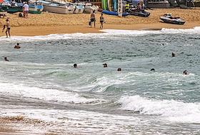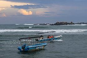 Виды Шри-Ланки. Жанровая фотография. Отдыхающие купаются в море.
