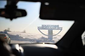 Жанровая фотография. Въездная стела "Новокузнецкий муниципальный округ" на трассе.