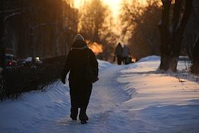 Жанровая фотография. Морозы в городе. Люди идут по улице.