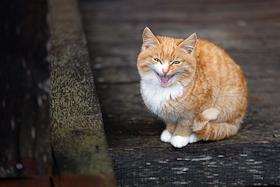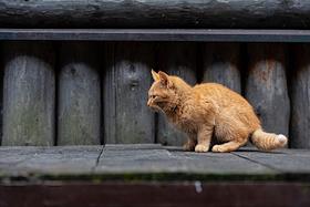 Жанровая фотография. Эко-ферма "Ваньково" в деревне Сивково. Рыжий кот сидит на лавочке.