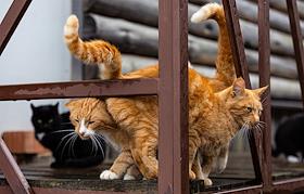Жанровая фотография. Эко-ферма "Ваньково" в деревне Сивково. Рыжие коты играют у дома.