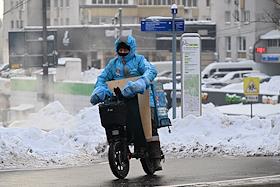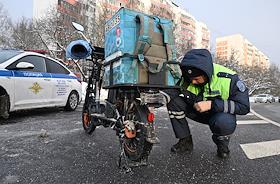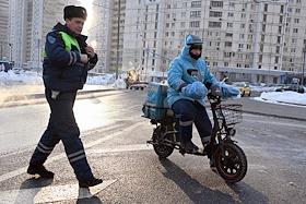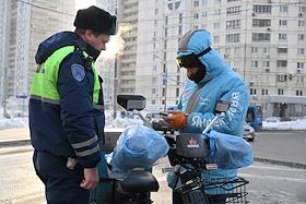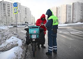 Рейд сотрудников ГИБДД по контролю за велокурьерами в Юго-Западном округе.