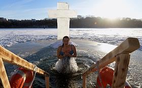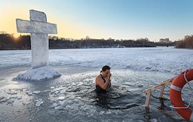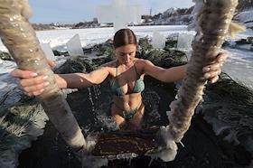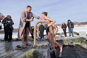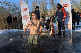 Праздник Крещения Господня (Богоявления). Крещенские купания в проруби на реке Кальмиус.