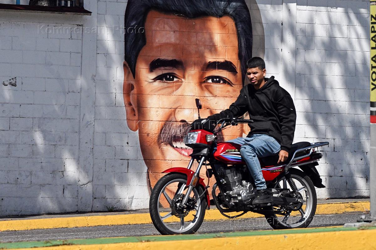 Виды Каракаса. Жанровая фотография. Граффити на стене с изображением президента Венесуэлы Николаса…