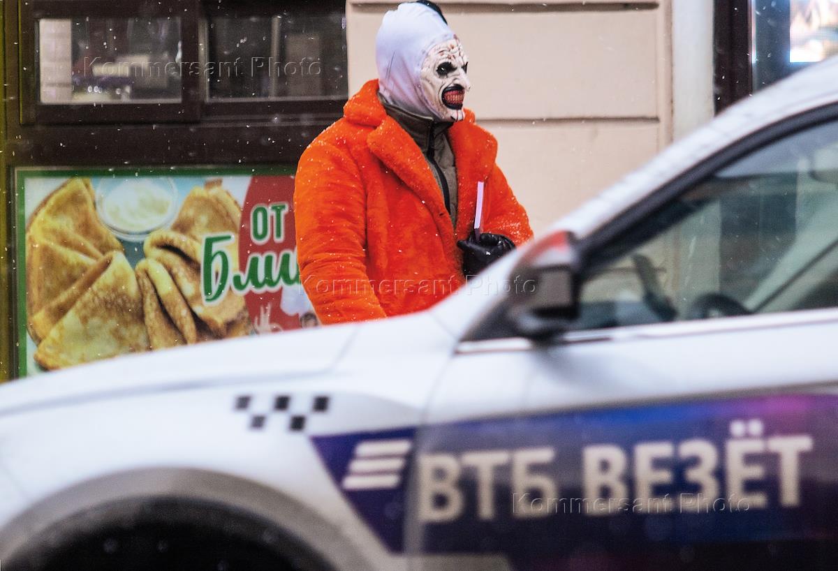 Виды Санкт-Петербурга. Жанровая фотография. Сотрудник в костюме зомби во время раздачи рекламных…