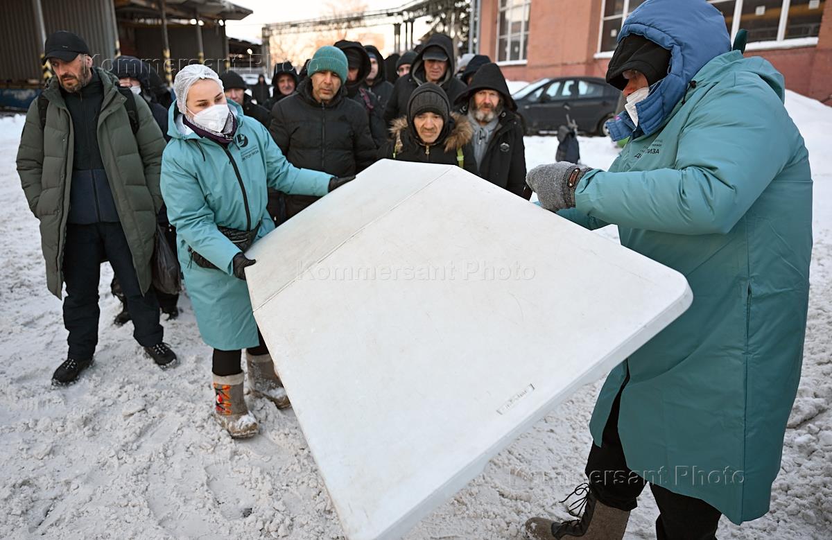 Раздача еды для бездомных волонтерами благотворительного фонда "Доктор Лиза" у Ярославского вокзала…