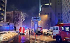 Пожар в жилом доме на улице Донская, дом 3. Пожарная техника МЧС России на месте происшествия.