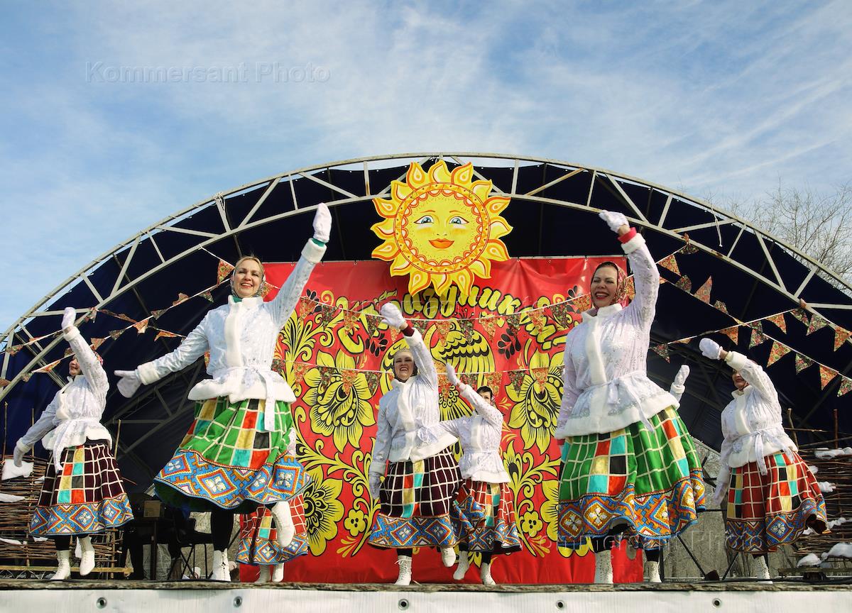 Празднование Масленицы в Парке Волжского.