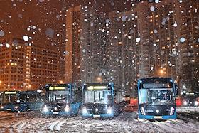 Фестиваль "Сани" от "Московских сезонов" в Крылатском. Жанровая фотография. Стоянка автобусов…