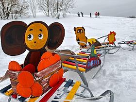 Фестиваль "Сани" от "Московских сезонов" в Крылатском. Жанровая фотография. Санки с фигурами героев…