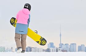 Фестиваль "Сани" от "Московских сезонов" в Крылатском. Жанровая фотография. Катание на сноуборде с…