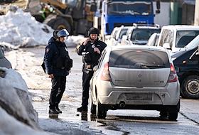 Обстановка в Брянске после ракетного обстрела. Жанровая фотография. Сотрудники полиции во время…
