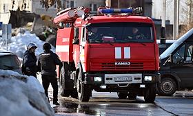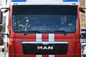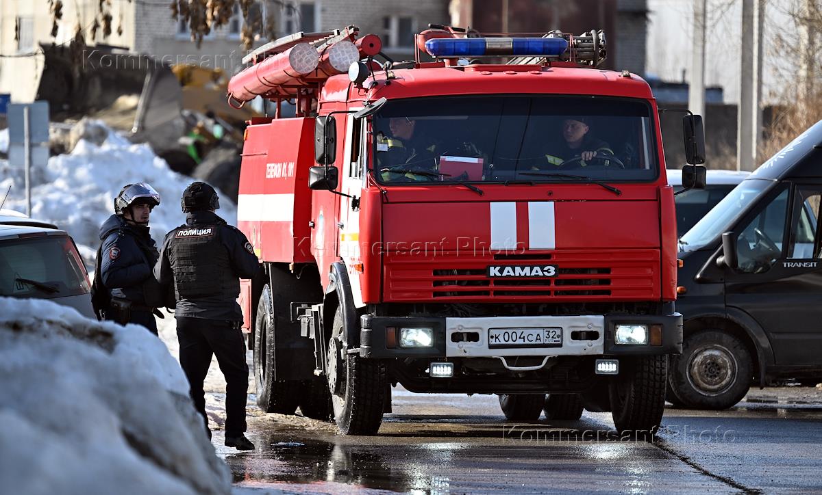 Обстановка в Брянске после ракетного обстрела. Жанровая фотография. Пожарный автомобиль на улице…