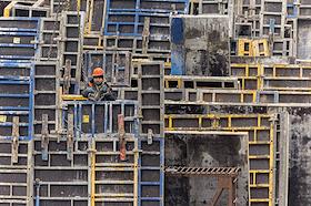 Жанровая фотография. Рабочий на строительстве многоэтажного жилого дома.