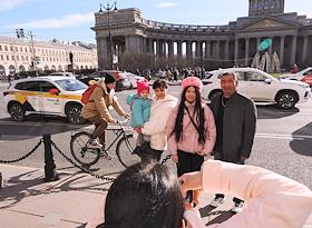 Виды Санкт-Петербурга. Жанровая фотография. Иностранные туристы фотографируются на фоне Казанского…