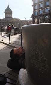 Виды Санкт-Петербурга. Жанровая фотография. Мужчина спит на гранитной скамье.