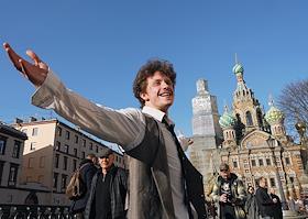 Виды Санкт-Петербурга. Жанровая фотография. Молодой человек на фоне храма Воскресения Христова (Спас…