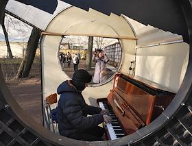 Виды Санкт-Петербурга. Жанровая фотография. Мужчина играет на пианино в сквере.
