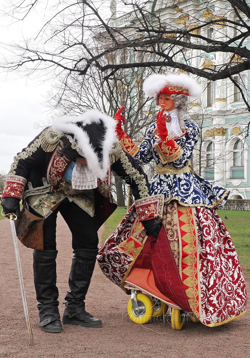 Виды Санкт-Петербурга. Жанровая фотография. Аниматор и кукла-манекен в исторических костюмах на…